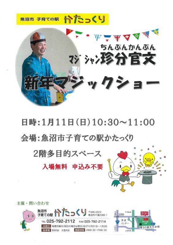 子どもたちに大人気のマジシャン「珍分官文」さんによる新春マジックショー 本格的なマジックもお楽しみに! |